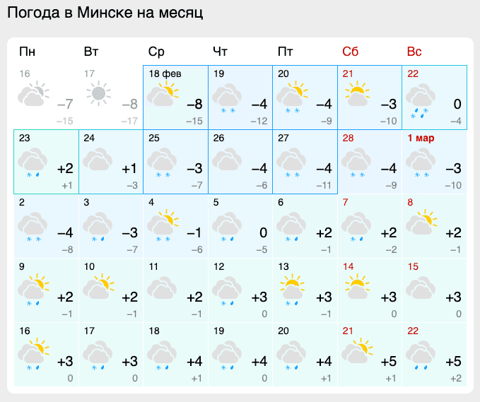 Белорусы все чаще задаются вопросом, когда придет весна, а также с надеждой изучают прогноз погоды, чтобы увидеть долгожданное тепло.