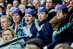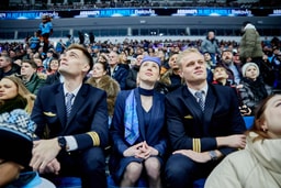 На арене были тематические фотозоны, на медиакубе, над площадкой, показывали интересные факты о команде, а пилоты и стюардессы, сопровождающие ее на выездных матчах, рассказывали о хоккеистах. Теперь мы знаем, что Виталий Пинчук сидит в салоне самолета всегда в 22-м ряду, Андрей Стась – выбирает курицу и черный чай с лимоном, а полет из Минска во Владивосток занимает около 9 часов.