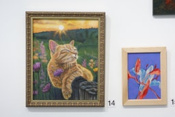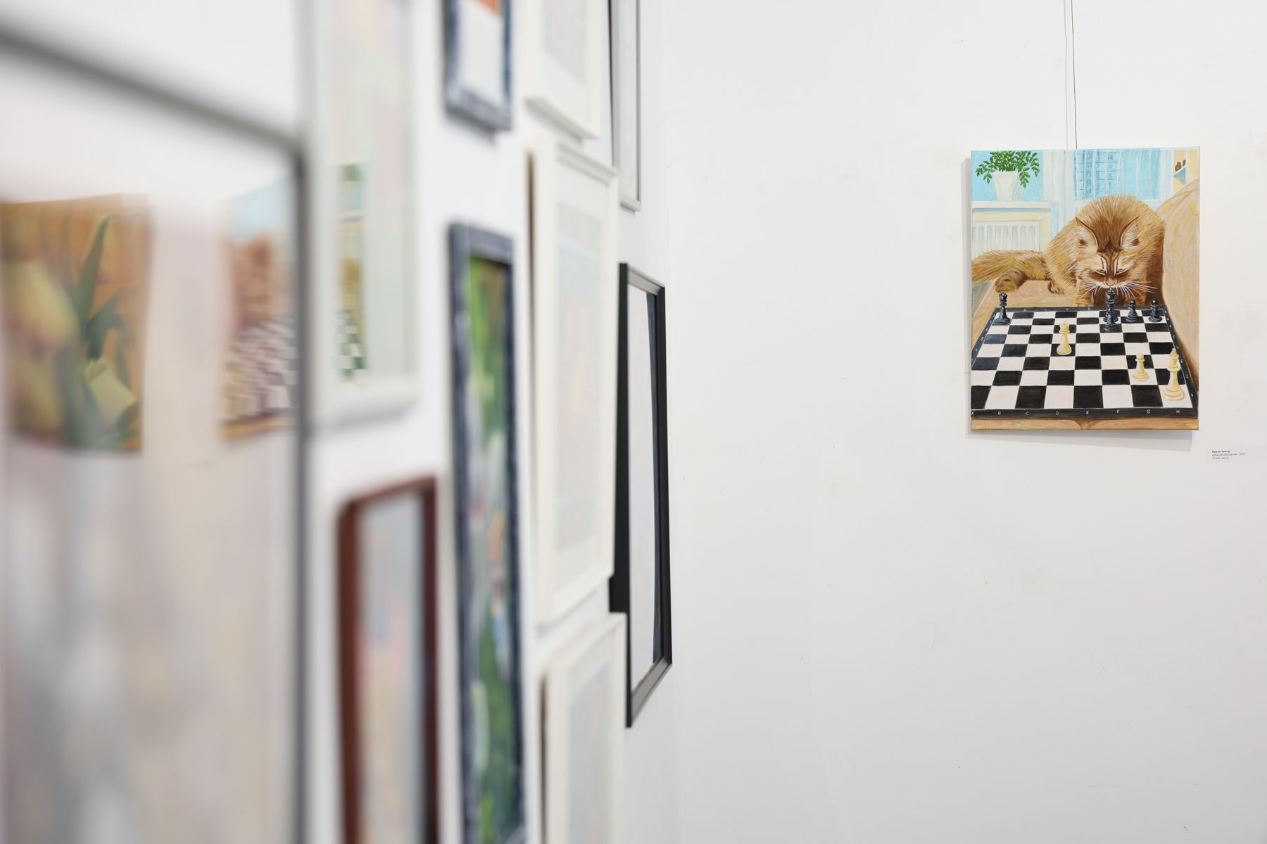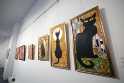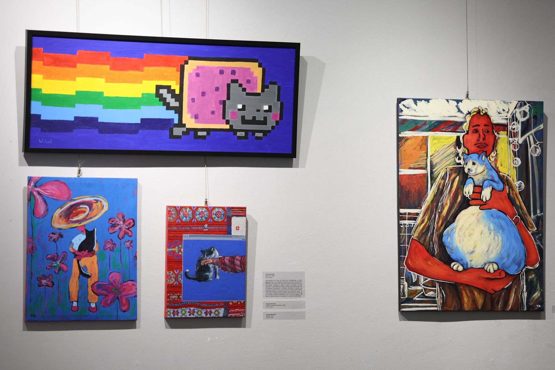Выставка «Джаз! Коты! Весна!» проходит с 2019 года и уже стала доброй традицией. На холстах – пушистики всех мастей: от бродячих до дворцовых, от ягуаров до домашних мурлык, от пушистых до гладкошерстных. Здесь нет иерархии: детские рисунки соседствуют с работами профи, живопись – с графикой и витражами.