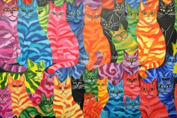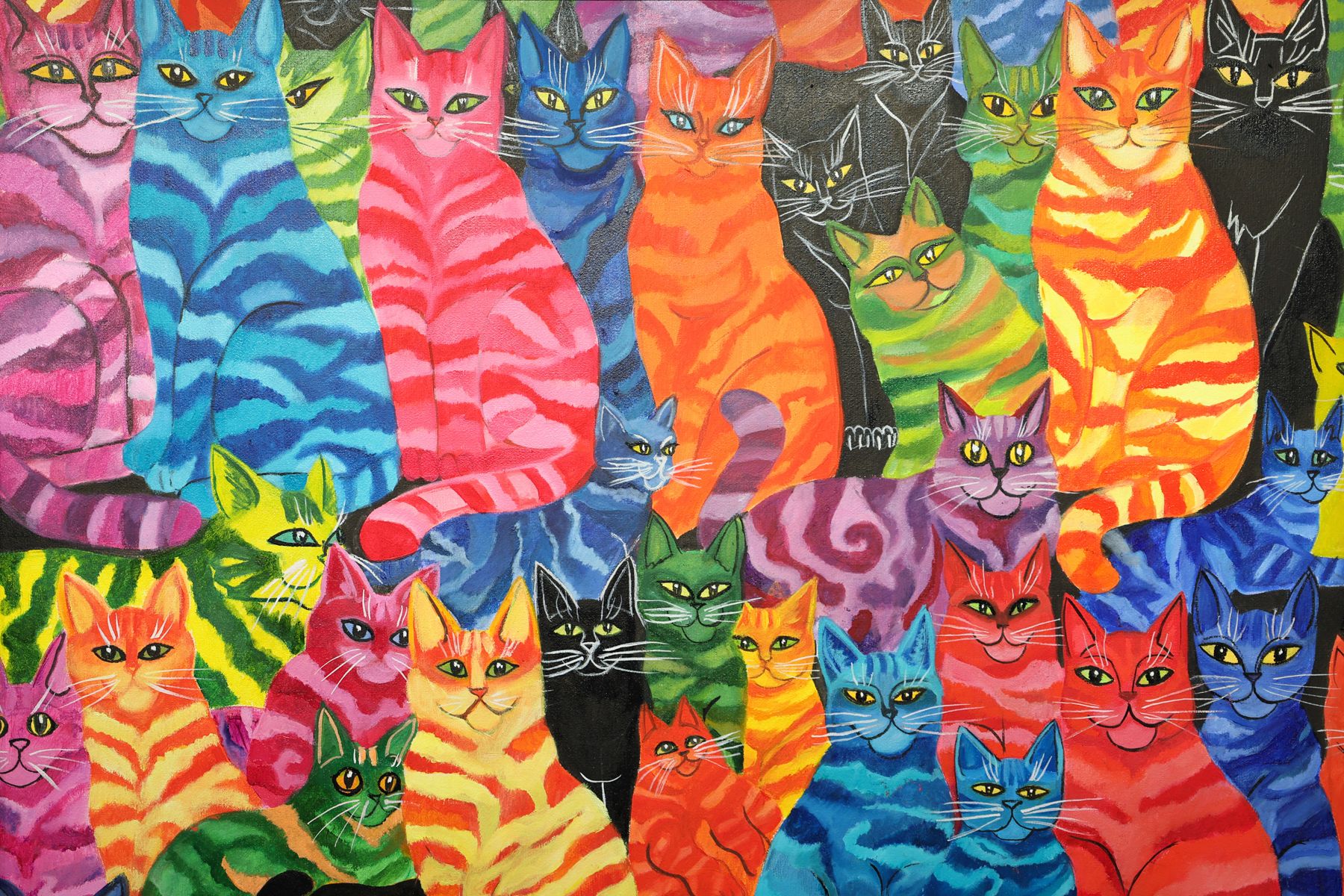 - Коллаж с цветными котами – авторы предлагают найти двух одинаковых котов (спойлер: это непросто)