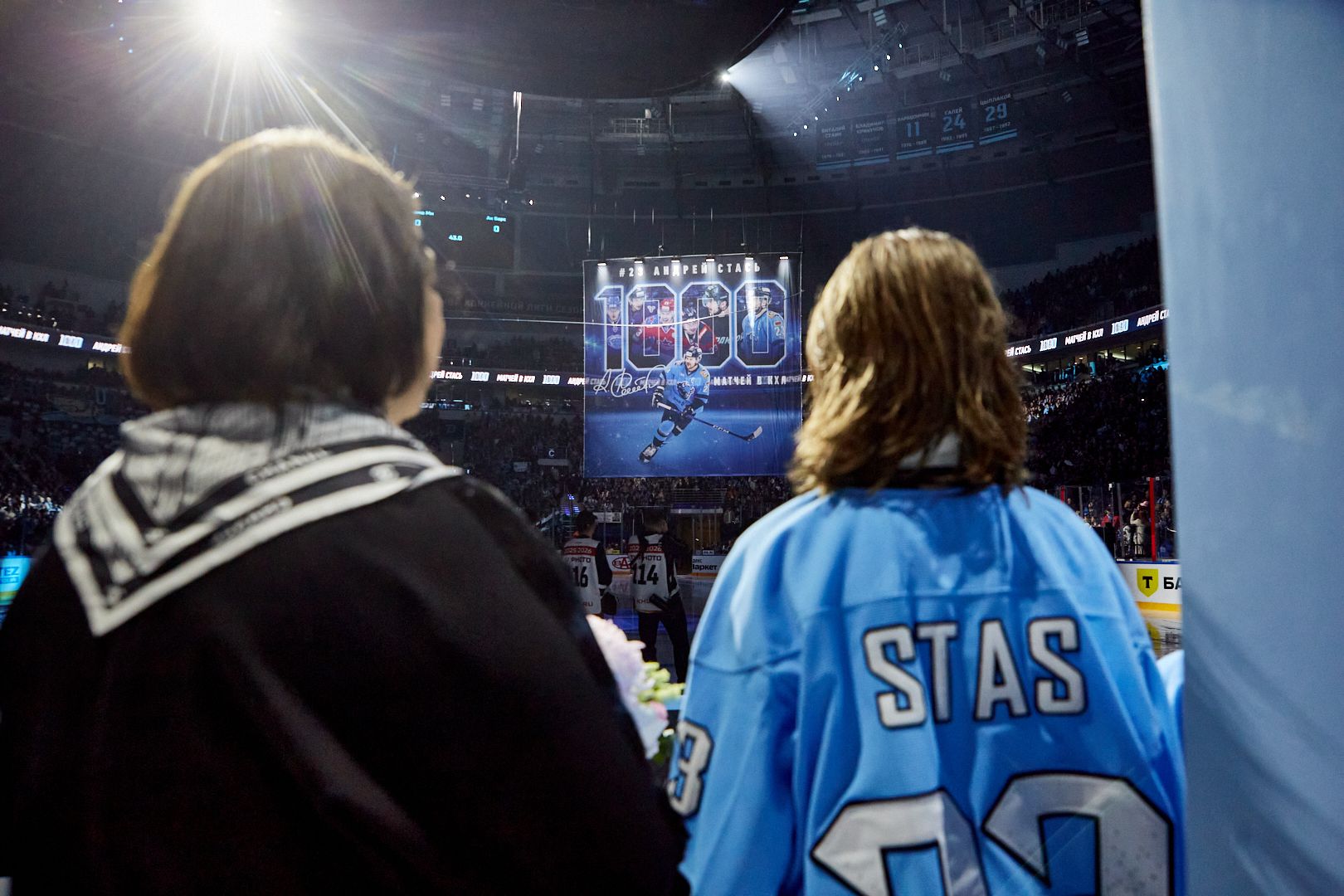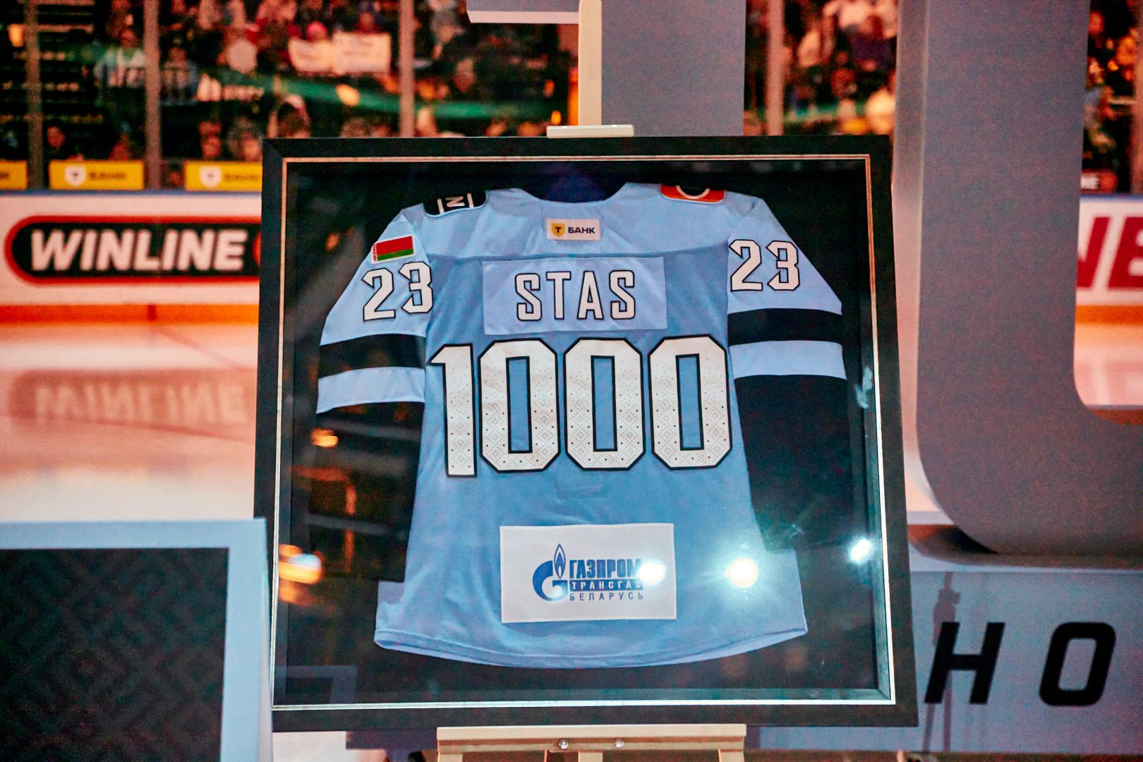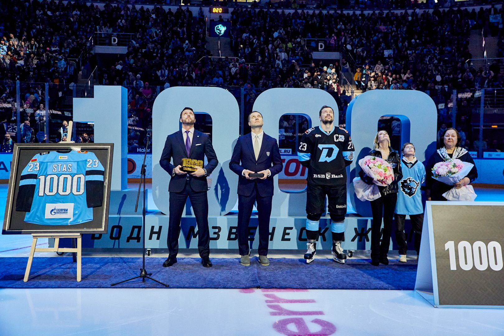 По такому случаю в Минск приехал президент КХЛ Алексей Морозов. Перед началом матча он вручил Стасю памятный знак и поздравил с вхождением в клуб рекордсменов. Генеральный директор «Динамо» Артем Каркоцкий презентовал награду от клуба. Также на лед вышла семья Стася. На медиакубе показали поздравления бывших партнеров Стася по командам, а под сводами арены развернули огромный баннер.