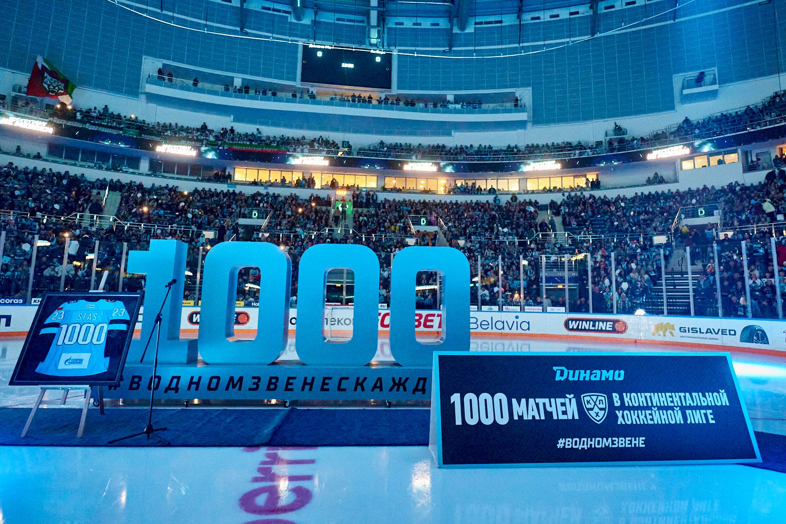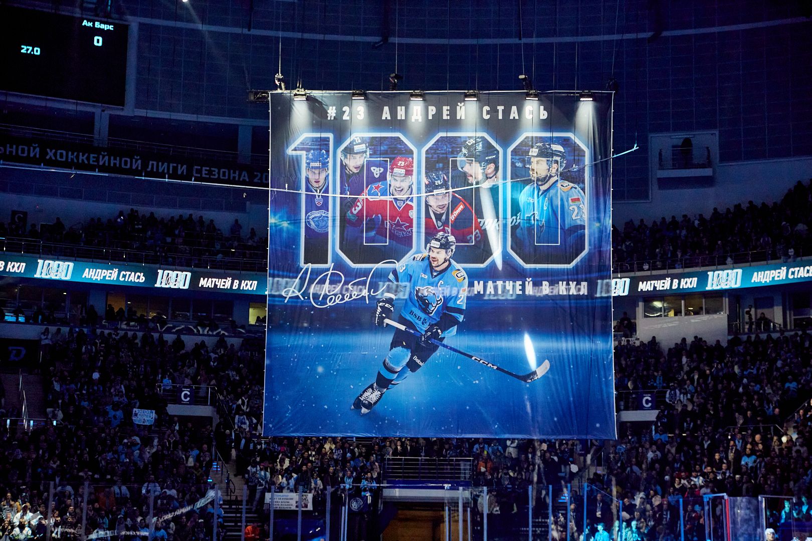 Хоккейный триллер на «Минск-Арене» устроили игроки минского и казанского клубов. Действо предваряла церемония по случаю 1000-го матча Андрея Стася в КХЛ.