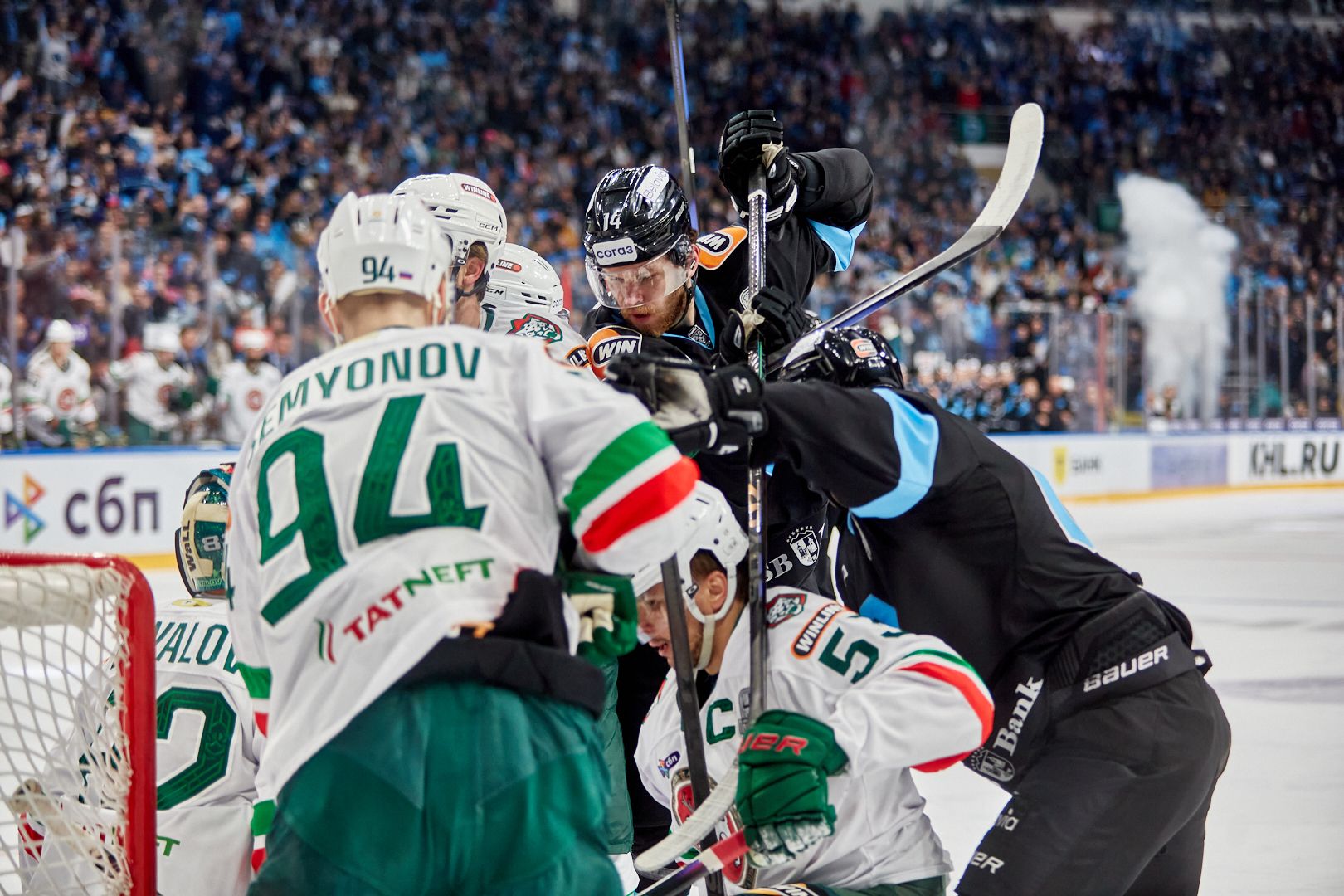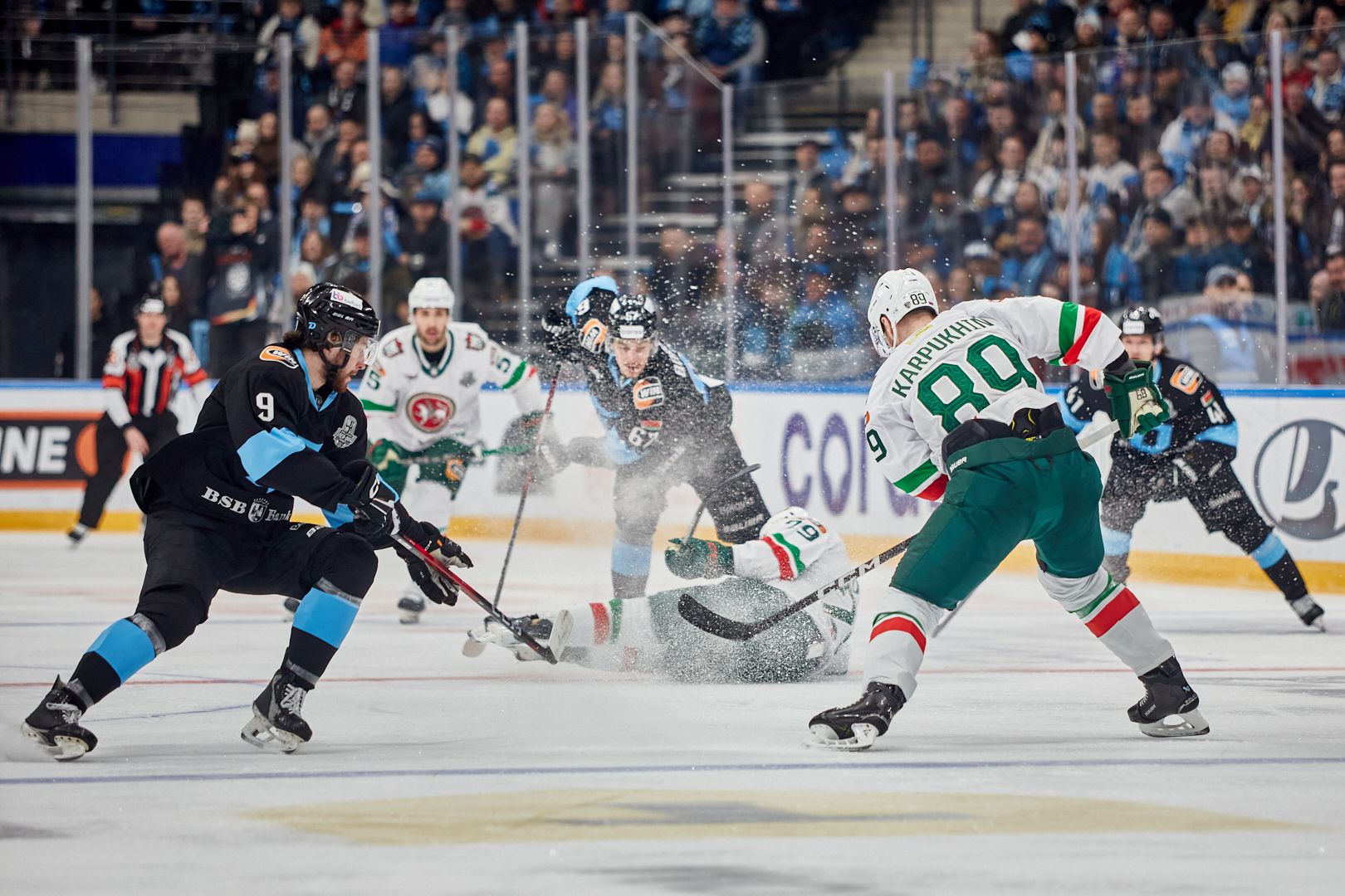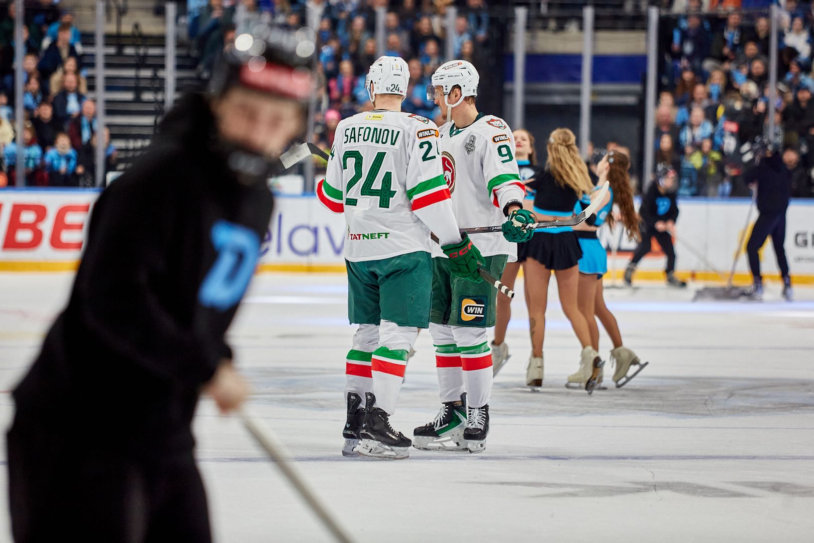 В КХЛ минское «Динамо» такие шоу с чувством, толком и расстановкой делает регулярно, благо поводов хватало. А вот главный тренер Дмитрий Квартальнов после матча сетовал, что его подшефные перегорели и начало матча проспали. «Ак Барс» быстро повел в счете и не давал «зубрам» что-то придумать в атаке.