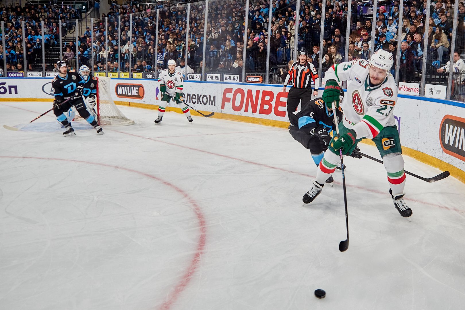 К началу третьего периода гости вели 3:1. И тут началось. «Динамо» быстро сравняло счет, а за минуту с небольшим до конца третьего периода вышло вперед. Казалось, победа в кармане. Но «Ак Барс» тут же отыгрался. Играть оставалось 46 секунд…
