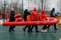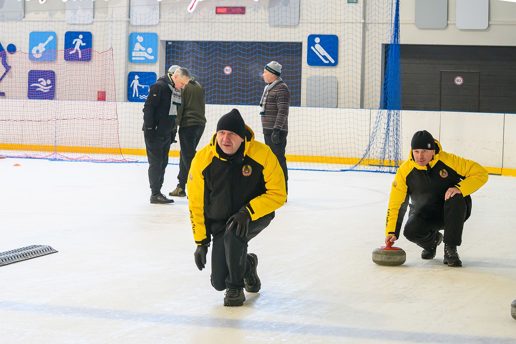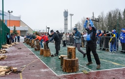 Но главное зрелище развернулось с участием руководителей. Им пришлось нелегко: хоккей с мячом, керлинг и... колка дров. Да-да, прямо на морозе, с топорами наперевес.