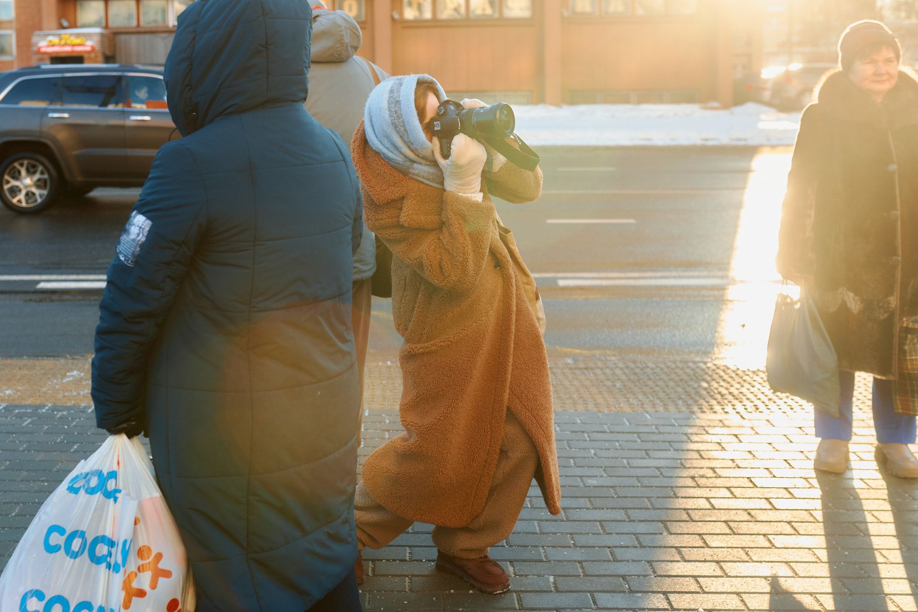 «У нас действительно спокойное отношение к таким съемкам, и это чувствуется. Мне нравится, когда прохожие не просто случайно попадают в кадр, а становятся его частью. Классно, когда получается взаимодействие. Например, кто-то держит модель за плечи или помогает с реквизитом», – отмечает Лина.