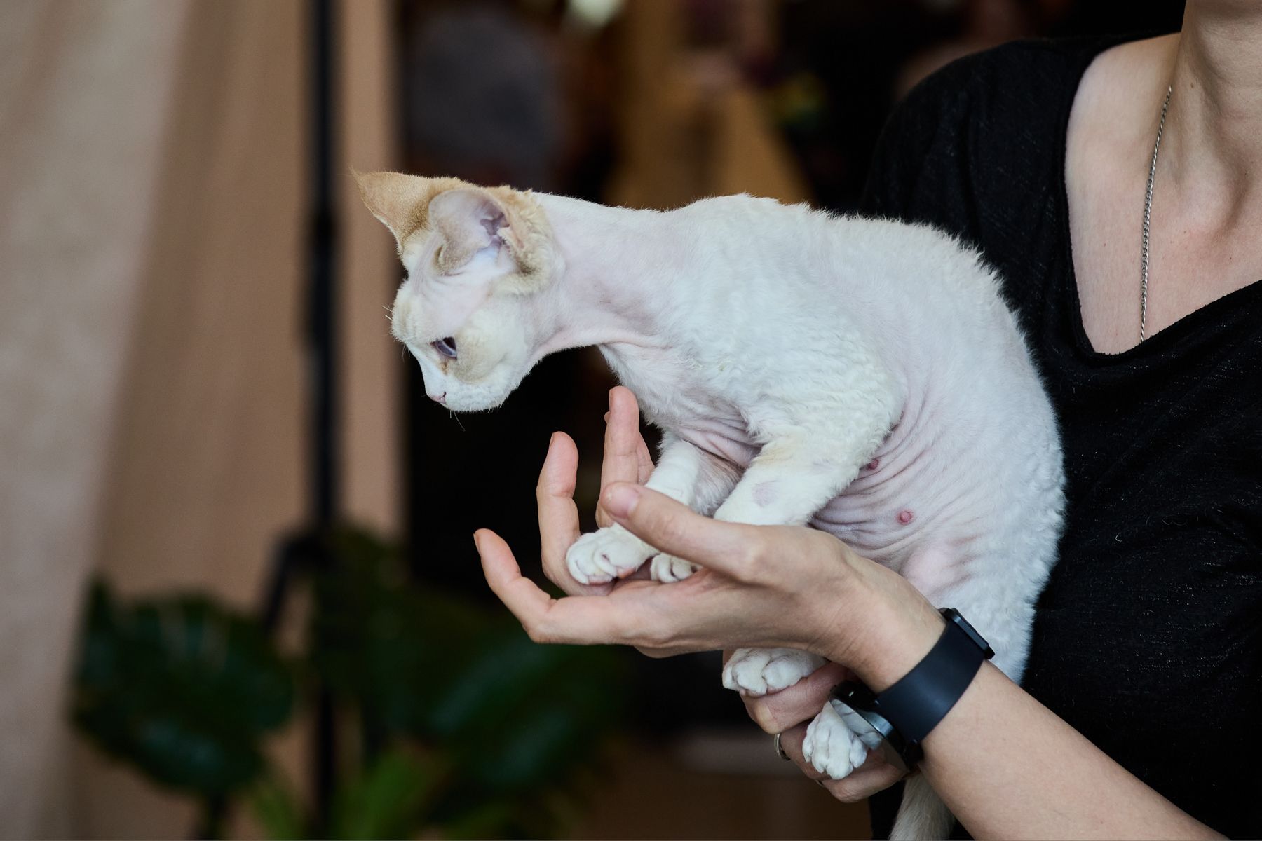 Еще один редкий гость на выставках – порода девон-рекс. Их отличает не только курчавая короткая шерстка, но огромные глаза на треугольной мордочке. Все вместе придает им вид абсолютно инопланетных существ.
