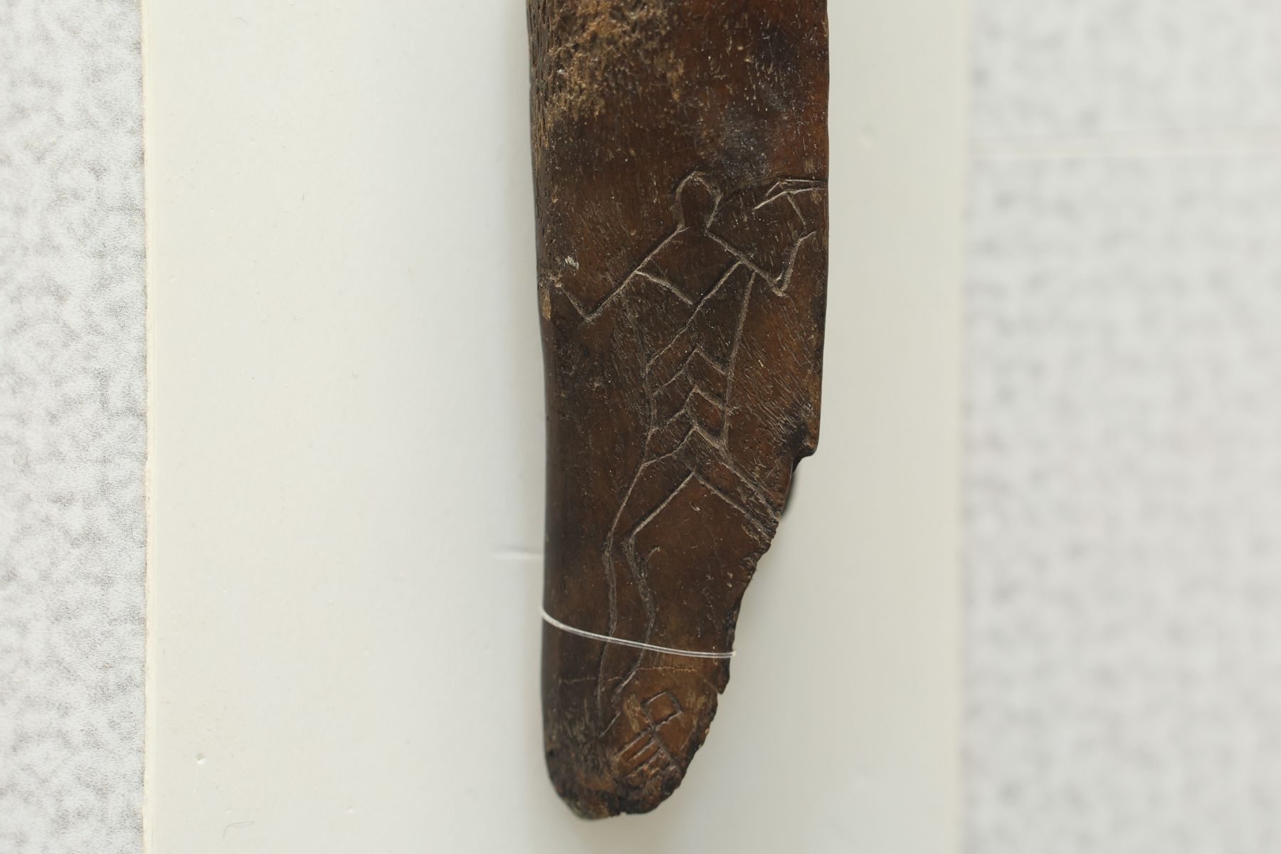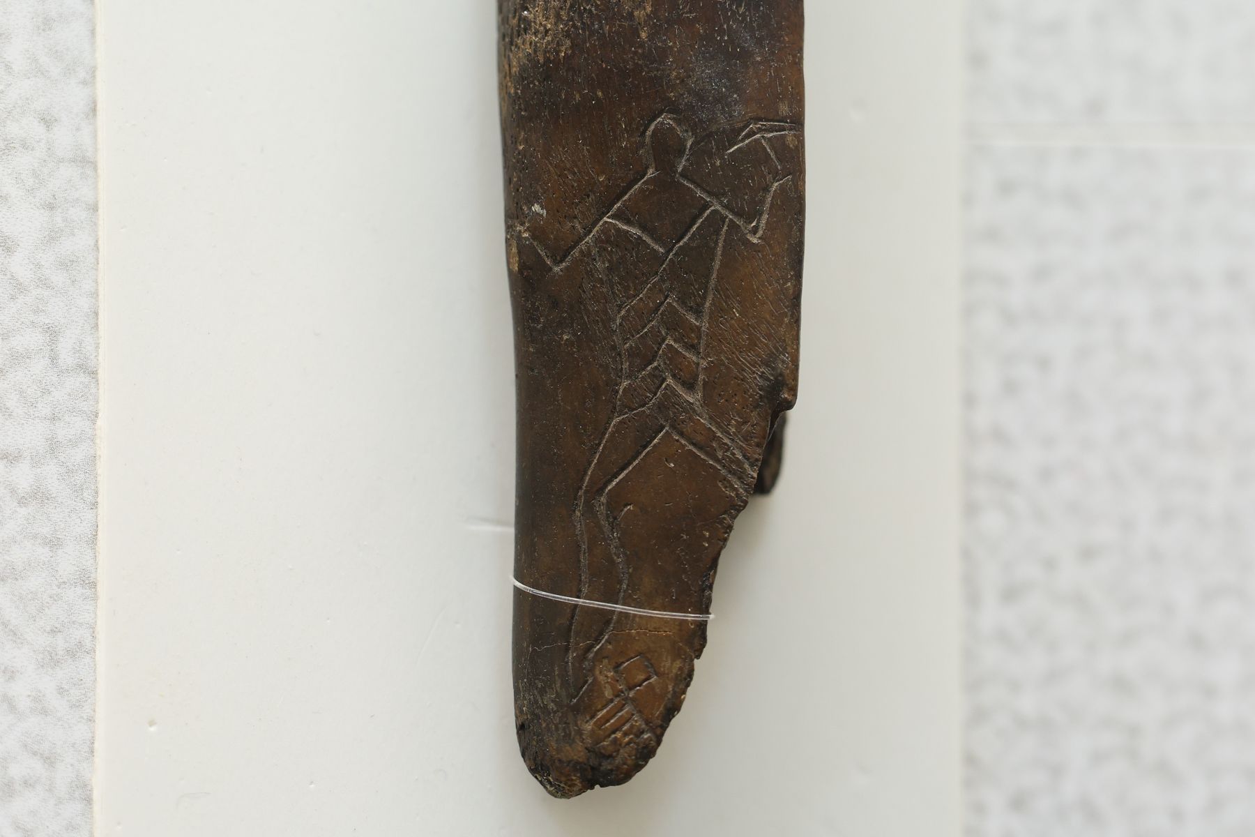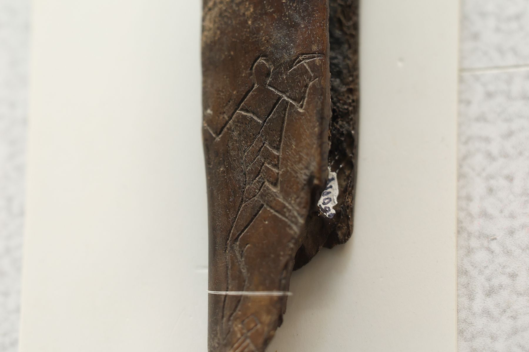 Как определили зоологи, кость, на фрагменте которой есть три изображения человека, принадлежала лосю. Изначально она была крупнее и сюжетных рисунков на ней могло быть даже больше.