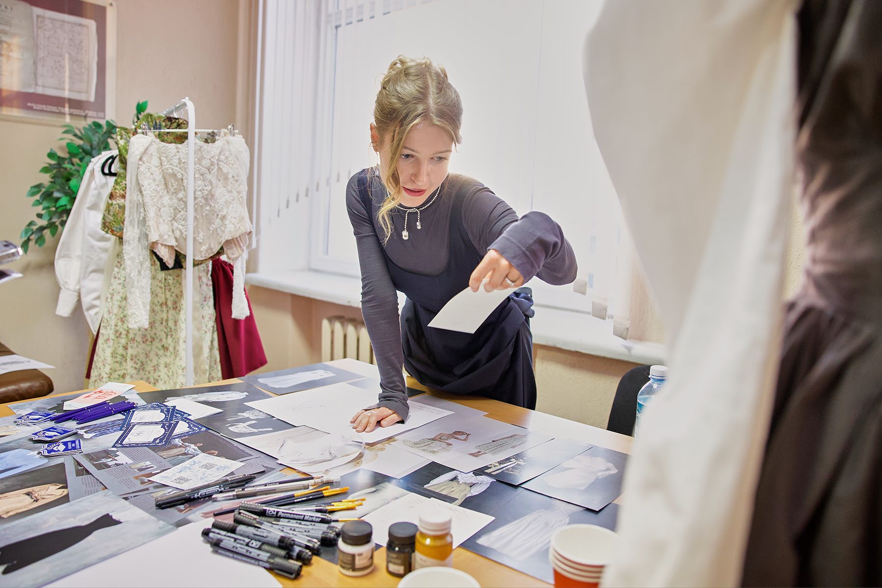 «Сегодня я предлагаю гостям почувствовать себя дизайнером и нарисовать эскиз для будущего костюма или платья. Я собираю контакты участников, чтобы впоследствии при пошиве нарядов по их эскизам отметить их в качестве соавторов», – рассказала она.