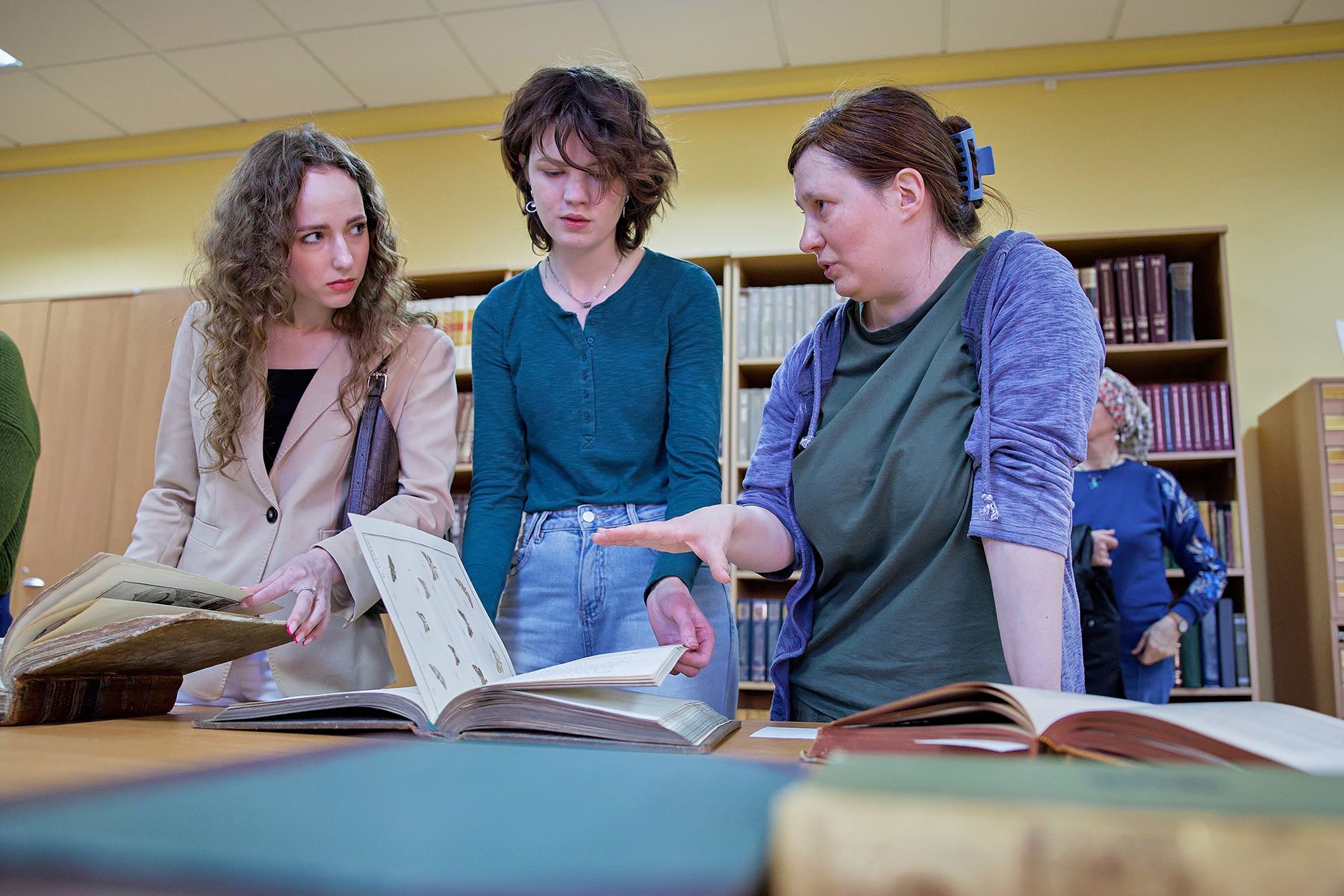 Это не единственное место с раритетами: в кабинете напротив можно было полистать книги XVIII–XX веков. Такой интерактив устраивают в библиотеке уже не первый год. Книги подбирают в хорошем состоянии и преимущественно с иллюстрациями – чтобы даже самым маленьким посетителям было интересно.