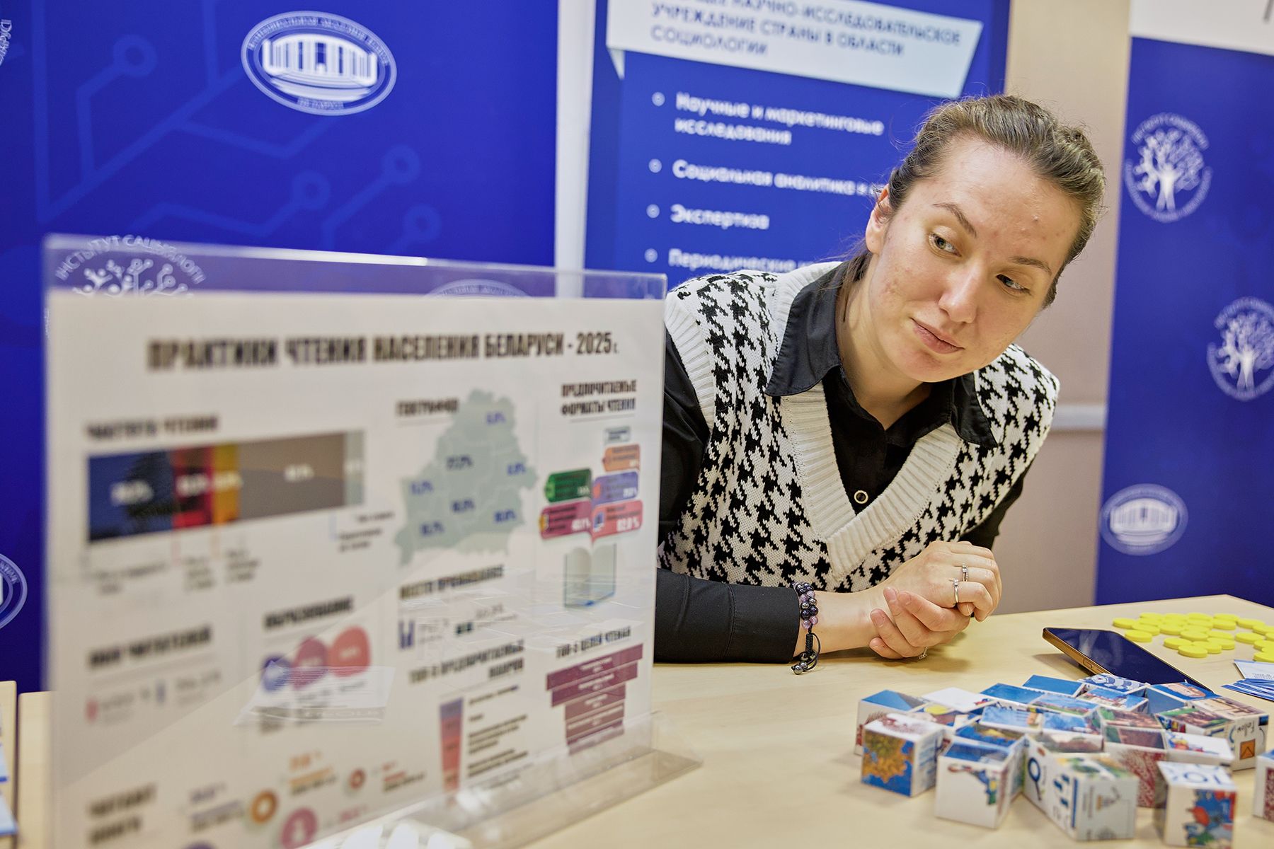 Отдельная площадка была посвящена деятельности Института социологии НАН: там проходили социологические игры и квизы, а также была представлена статистика по практике чтения белорусов в 2025 году.