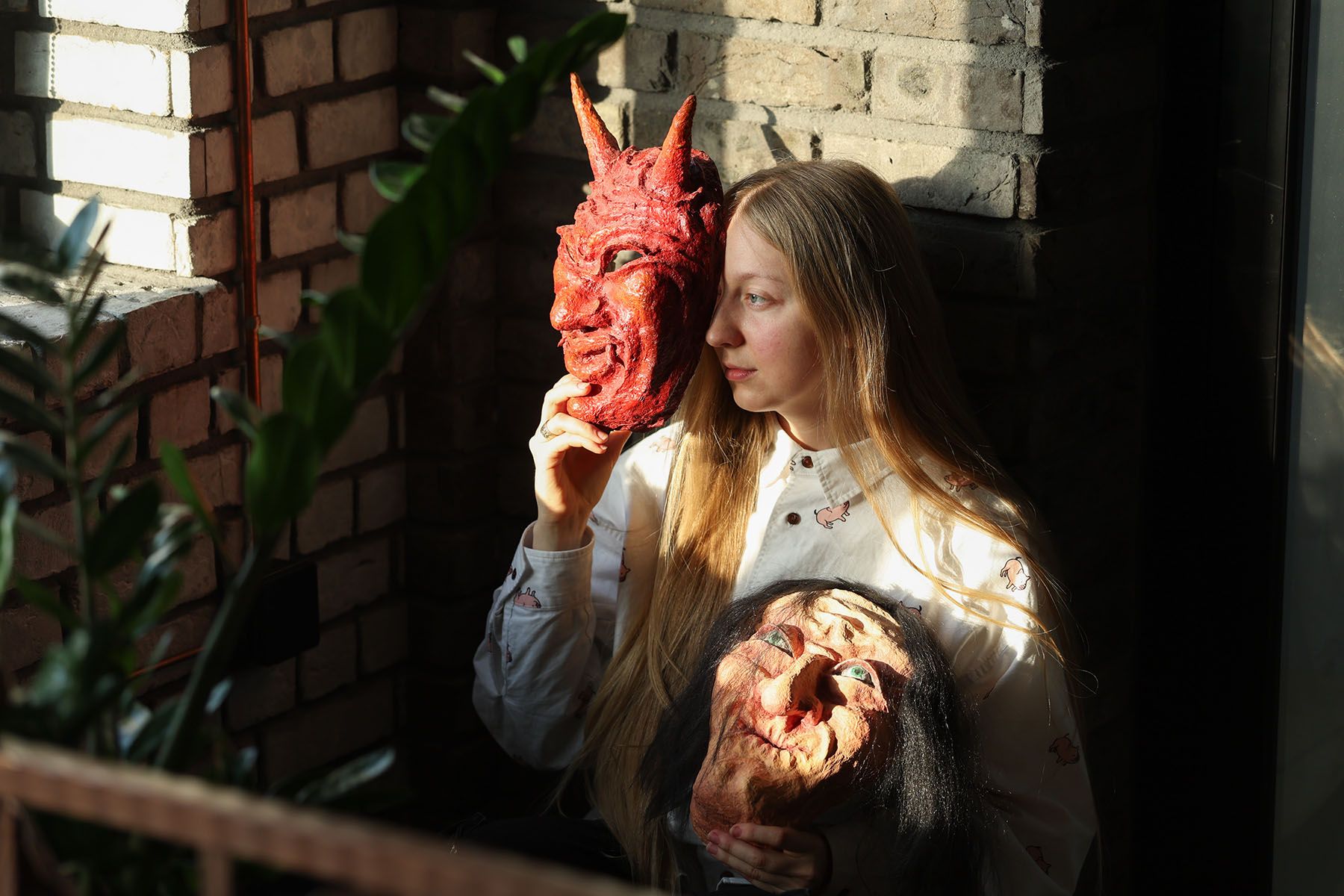 «Всего мы сделали около тридцати масок, но в финальную экспозицию вошли не все. Видимо, некоторых персонажей – черта и бабку – посчитали слишком страшными», – смеется художница.