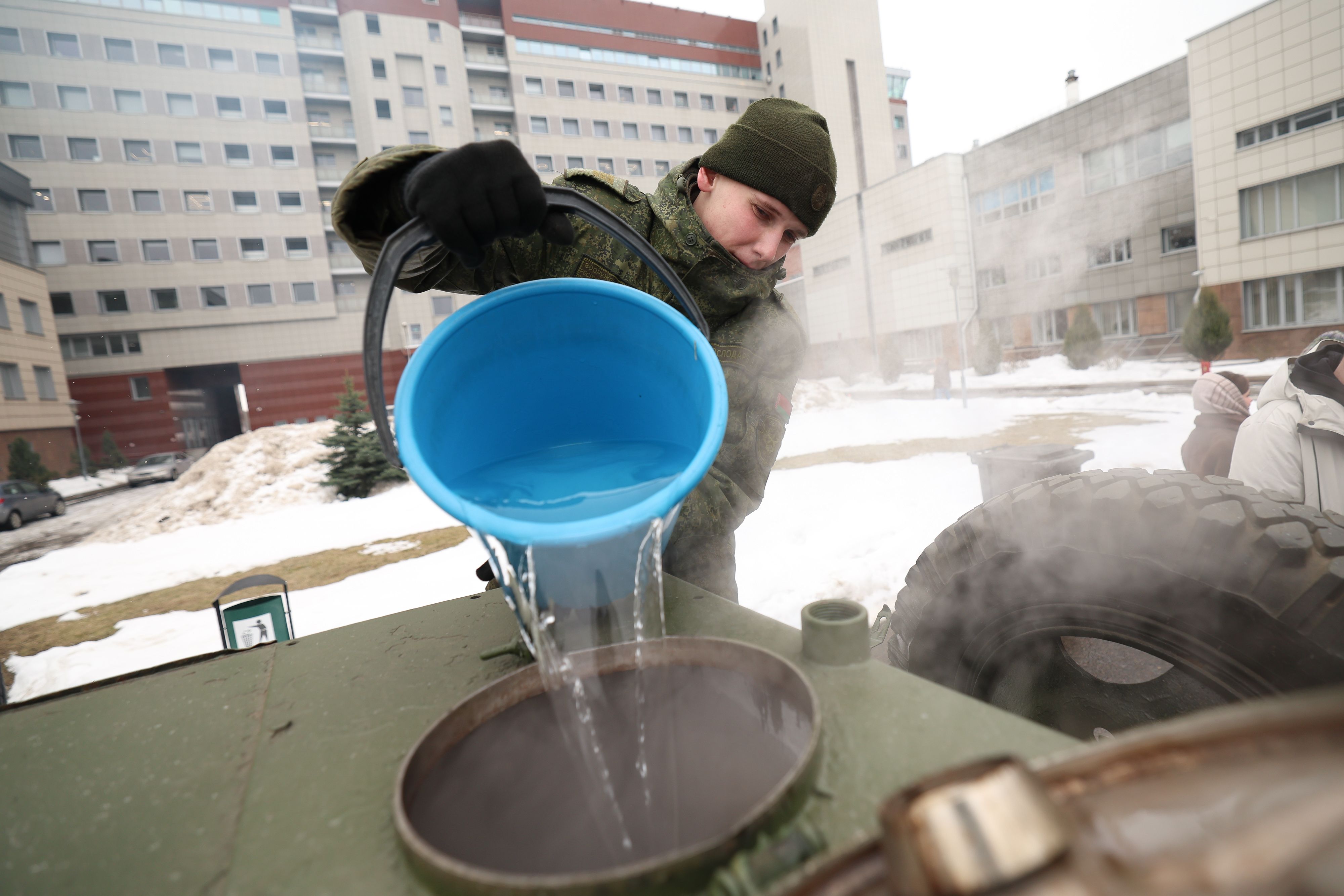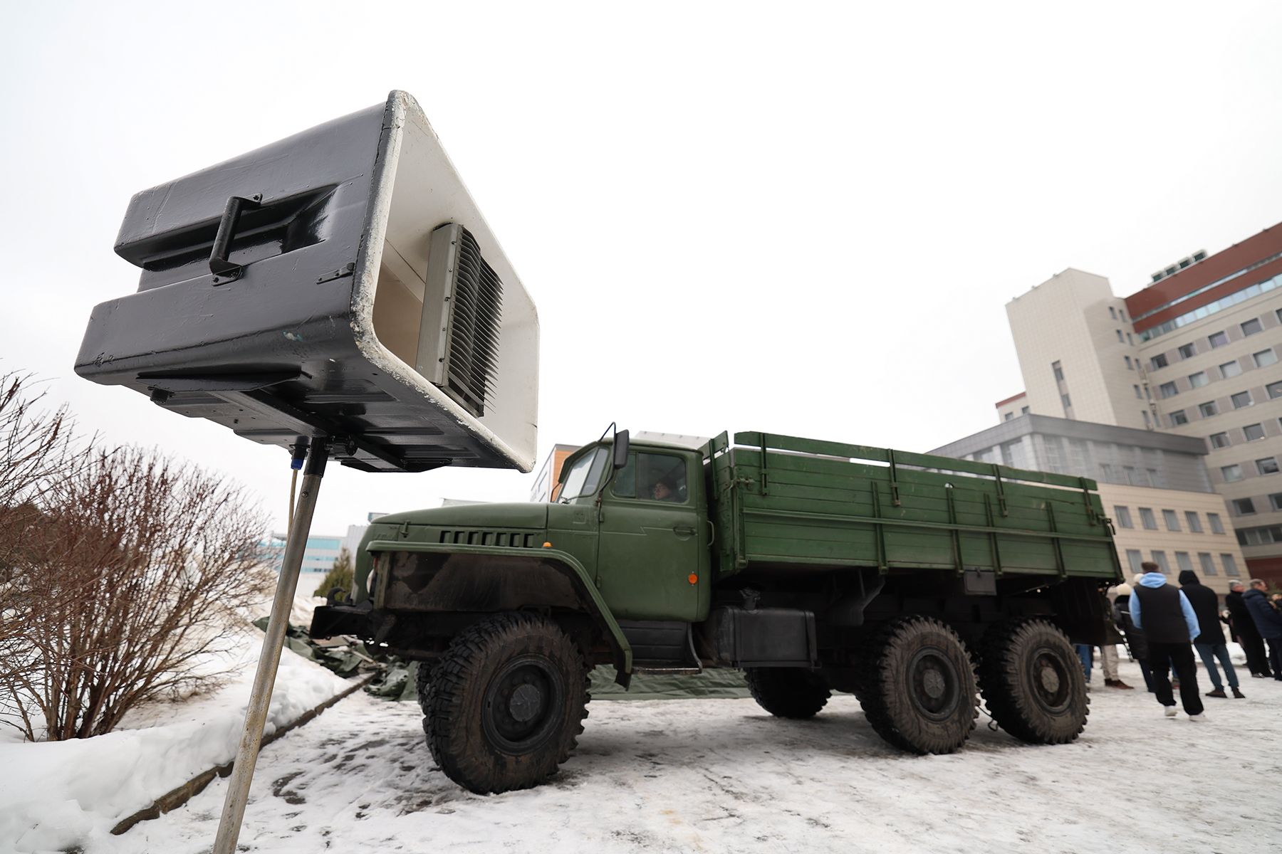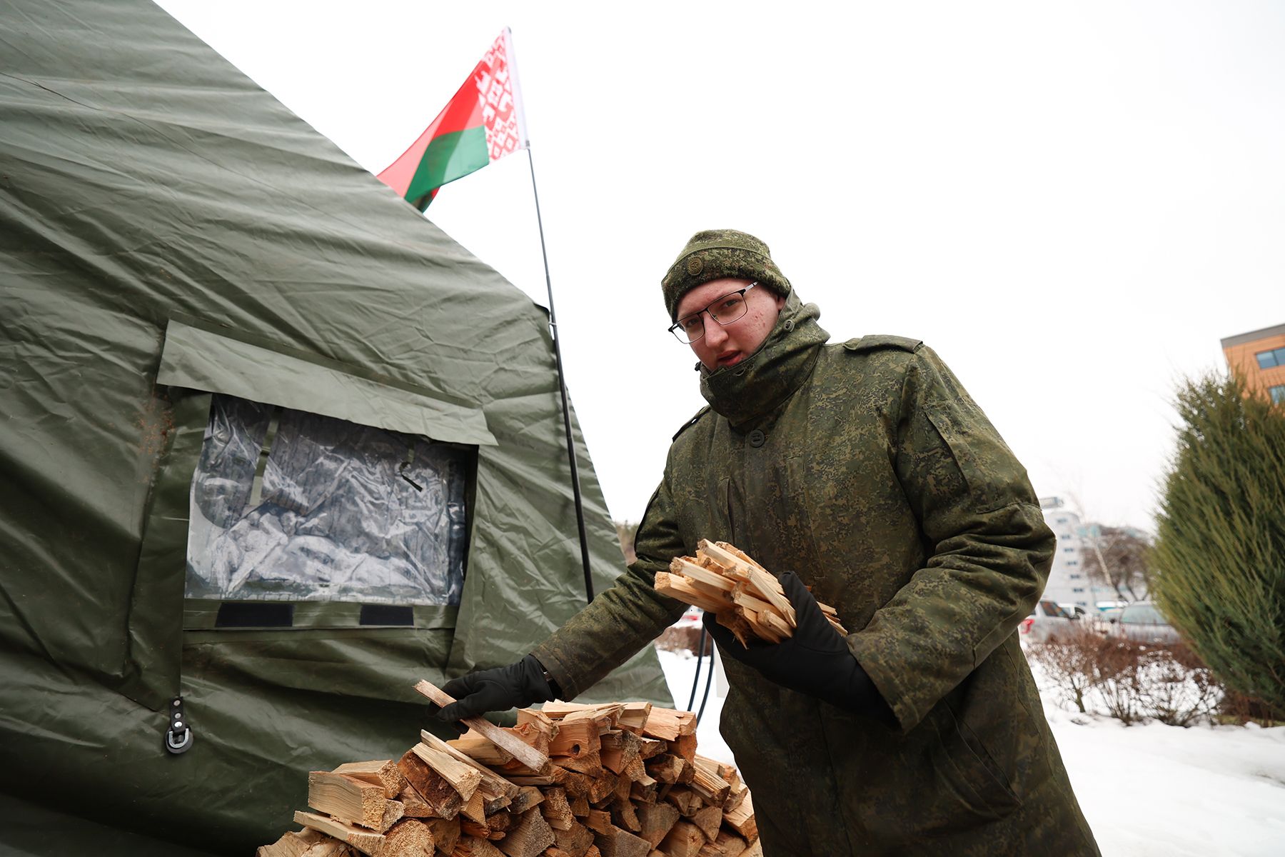 23 февраля в Парке высоких технологий (ПВТ) к обеденному перерыву военные развернули полевую кухню и небольшую столовую, а также привезли специальную агитационную машину.