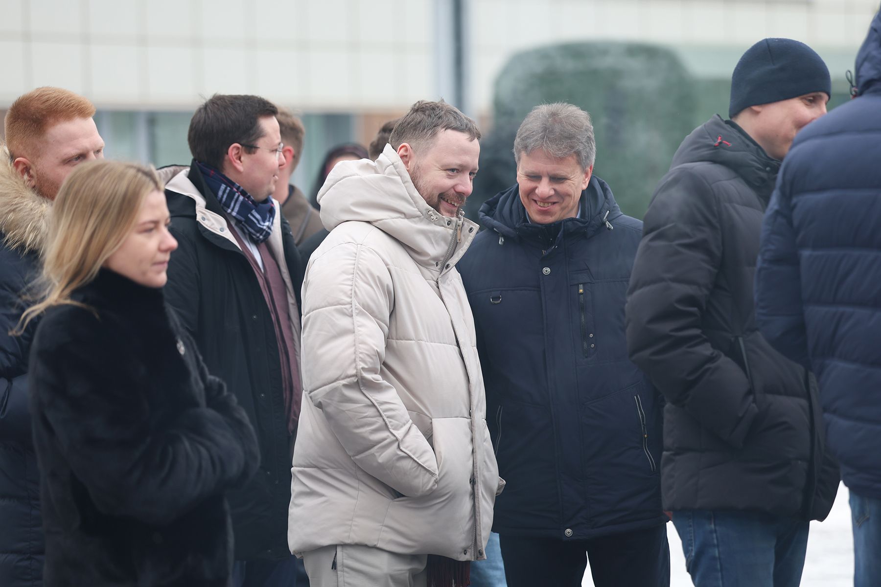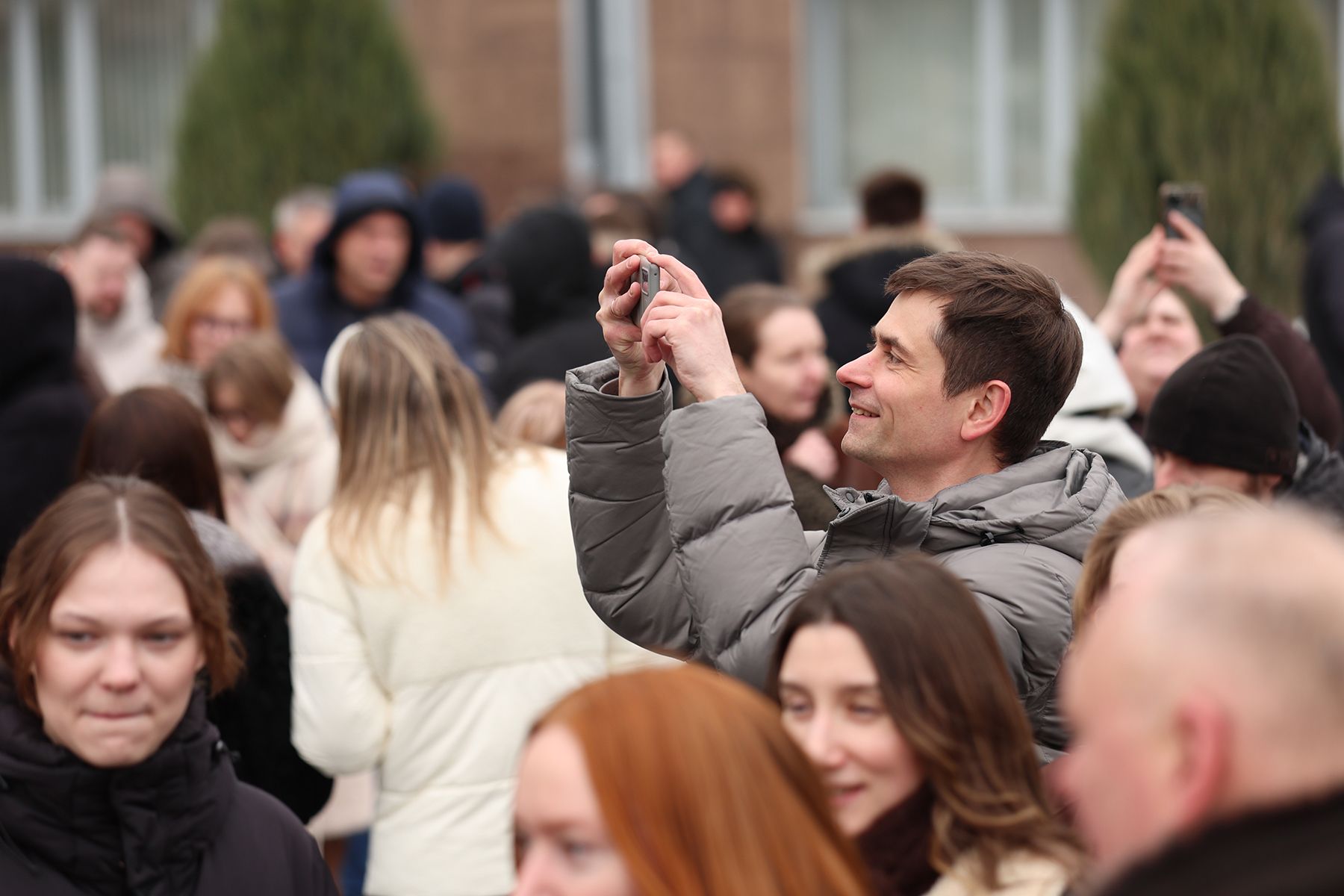 Во внутреннем дворе Парка собралась большая компания сотрудников главного IT-кластера страны. Начальник ПВТ Анна Рябова от лица всего коллектива поздравила мужчин с Днем защитников Отечества.