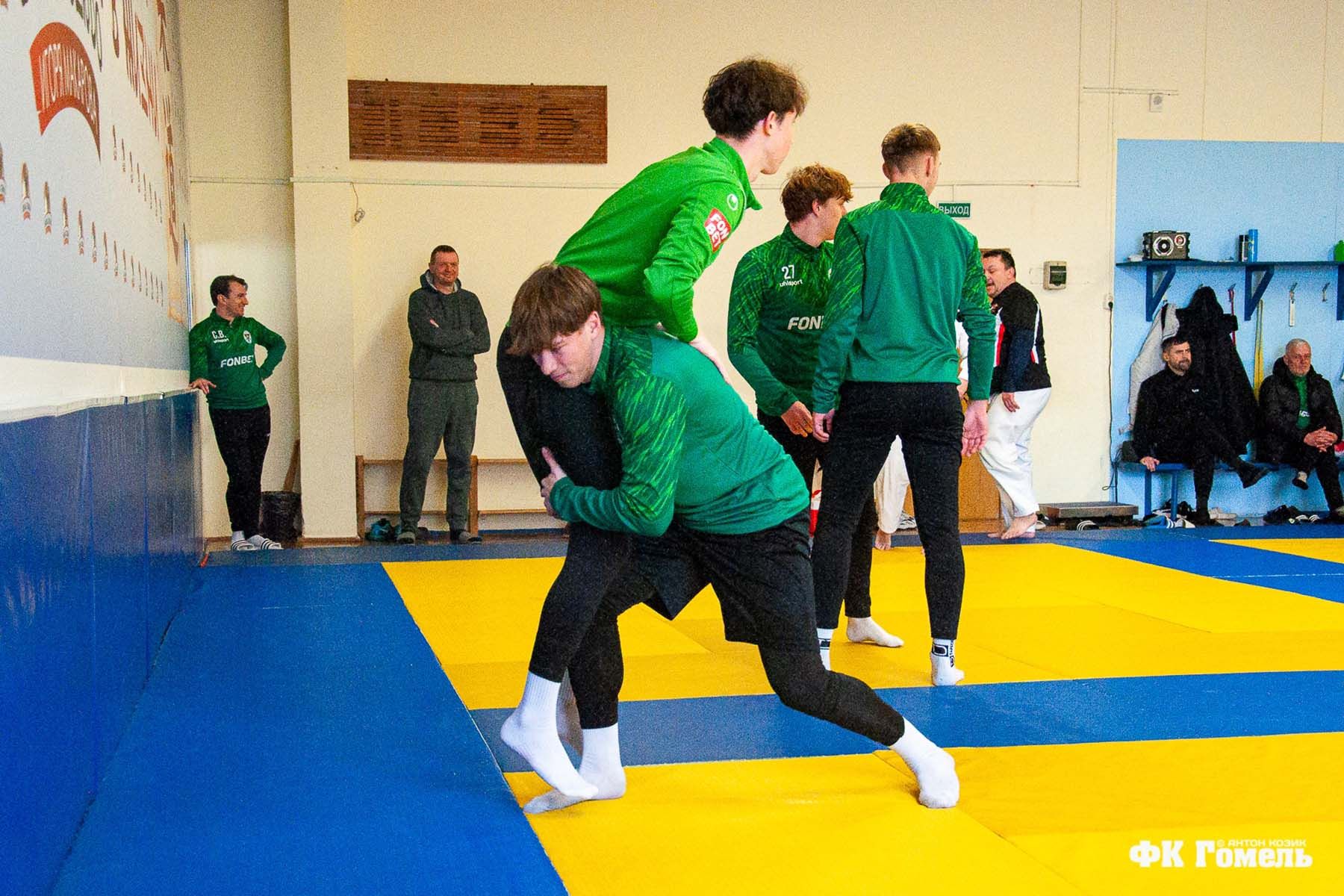 Футболисты «Гомеля» провели тренировку по дзюдо. Звучит странно. Но на самом деле это распространенная практика. Правда, больше у юных футболистов. Дзюдо есть в программе легендарной академии амстердамского «Аякса». В Гомеле грех не использовать эту методику, ведь в городе живет и работает олимпийский чемпион Игорь Макаров. Дзюдоист и преподал пару уроков футболистам.