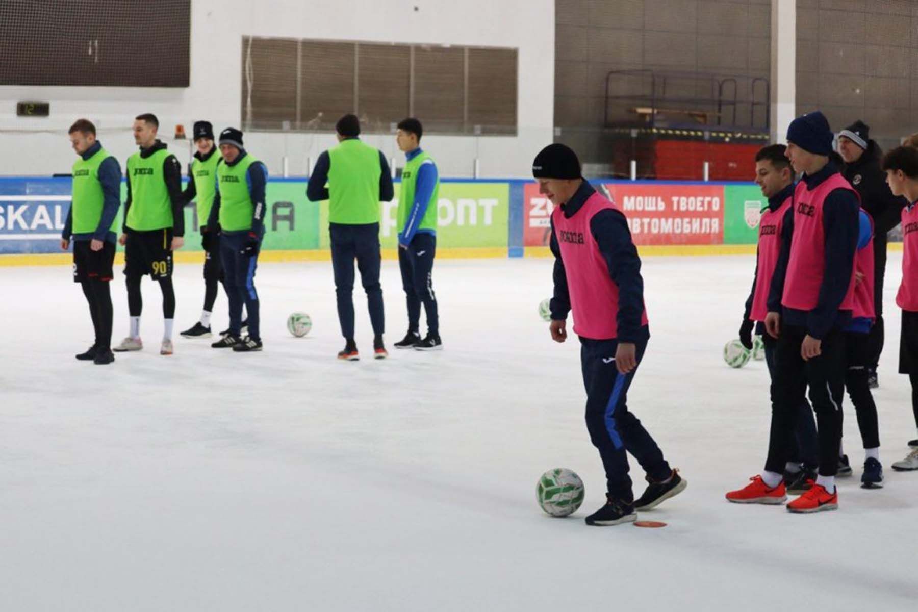 Футболисты пинской «Волны» провели тренировку на льду. © Официальный сайт футбольного клуба Волна (Пинск)