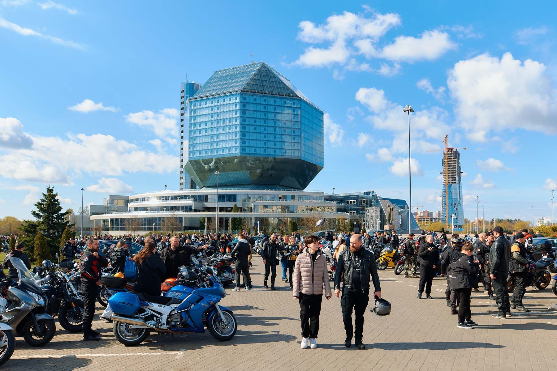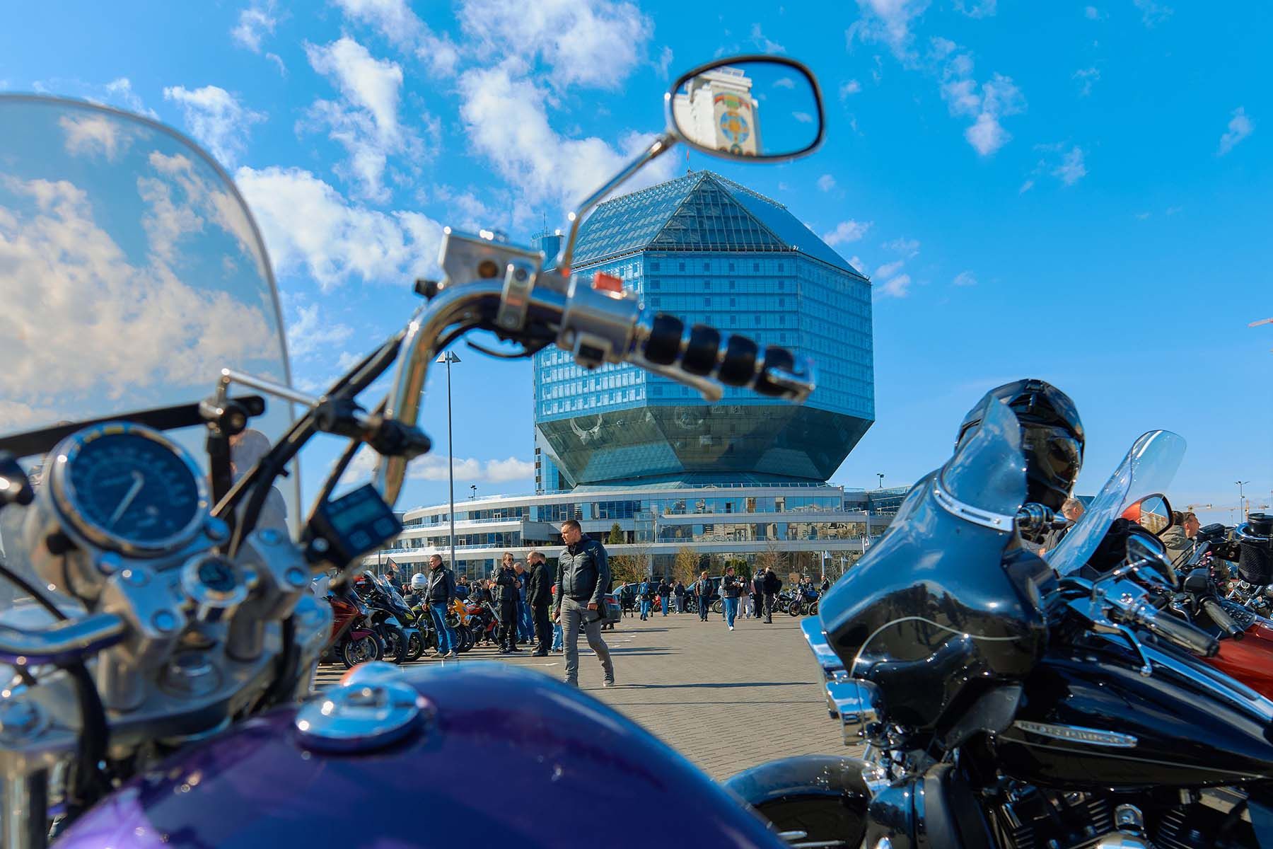 В Минске 19 апреля прошло республиканское открытие мотосезона. Колонна байкеров собралась возле Национальной библиотеки, а затем проследовала по проспекту Независимости.