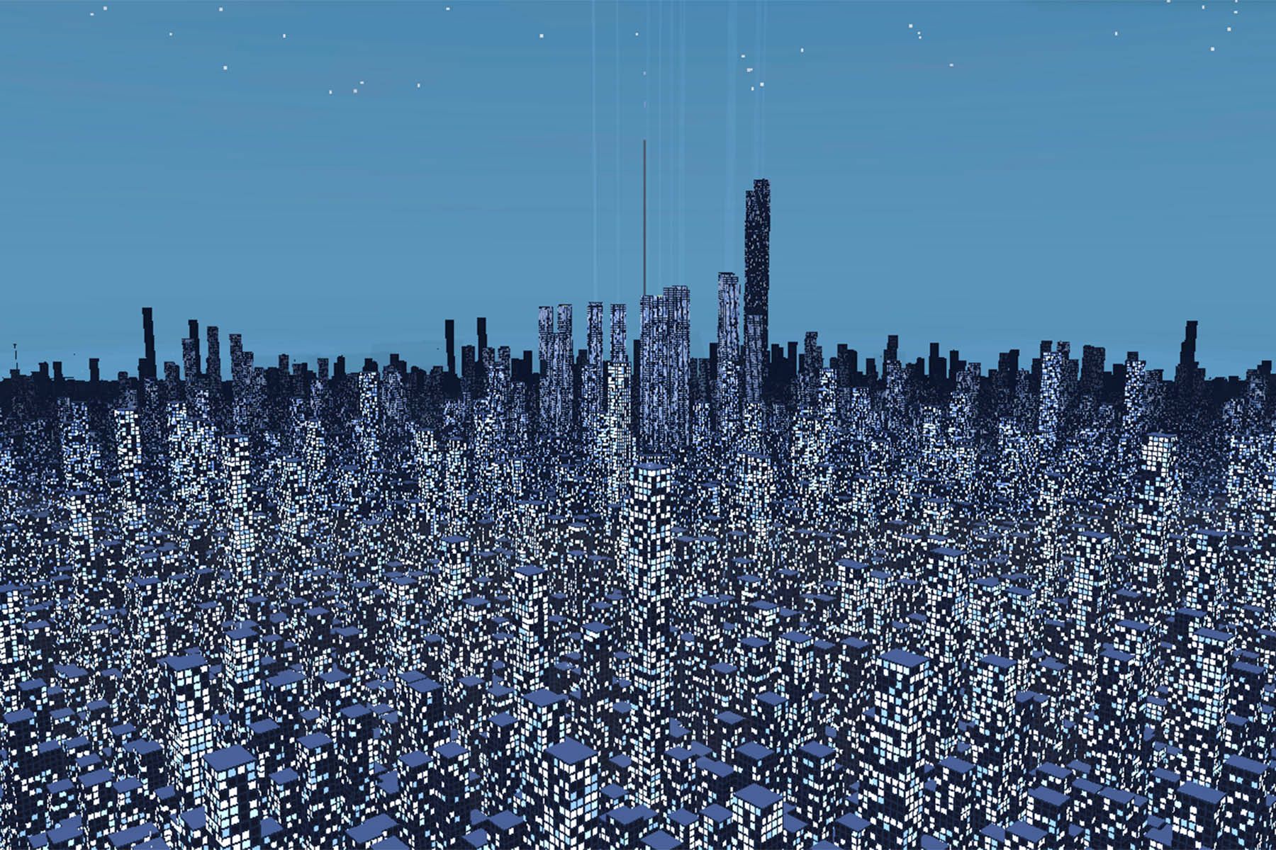 Каждое здание – это одна из 100 тысяч самых популярных статей, а чем чаще ее читают, тем небоскреб выше.