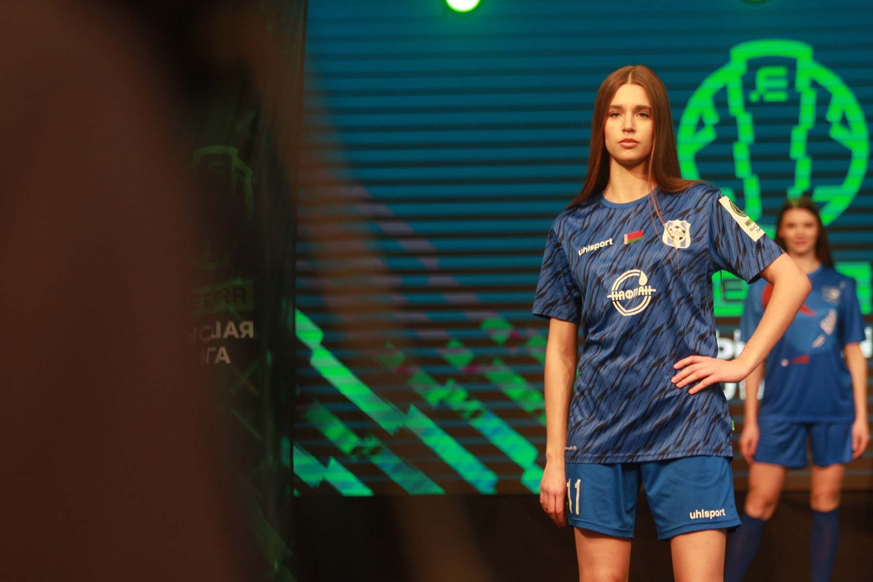 До начала жеребьевки модели Национальной школы красоты дефилировали в майках клубов, которые примут участие в первенстве.