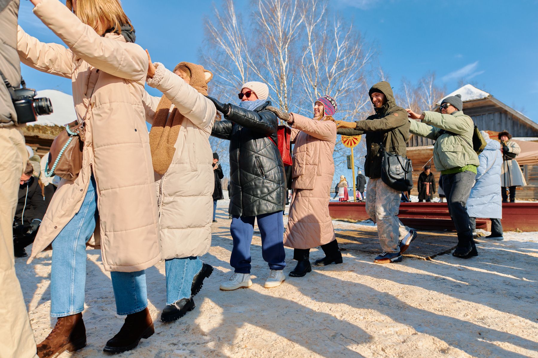 И какой же праздник без танцев! Музыканты активно зазывали публику в хороводы и учили танцевать: перекатываться с ноги на ногу, как тяжелый мешок, и быстро кружиться, как заяц по лесу.