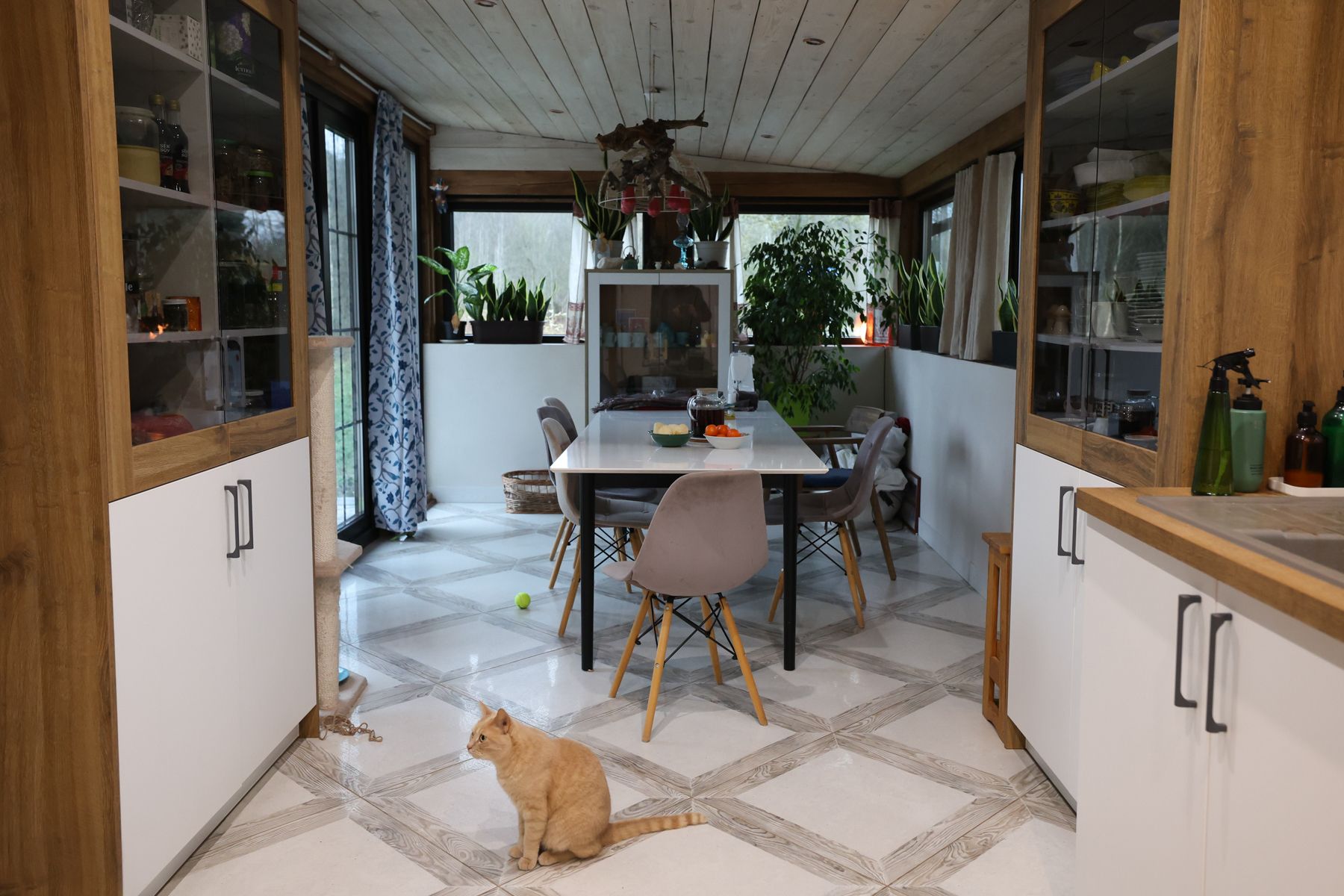 Дом, в котором живет Ириана, был куплен у 92-летней бабушки. Сегодня его просто не узнать. Сохранили все, что смогли: печку, балки, стены, подвал, окна. Но подлили фундамент, сделали новую крышу, пол, террасы.