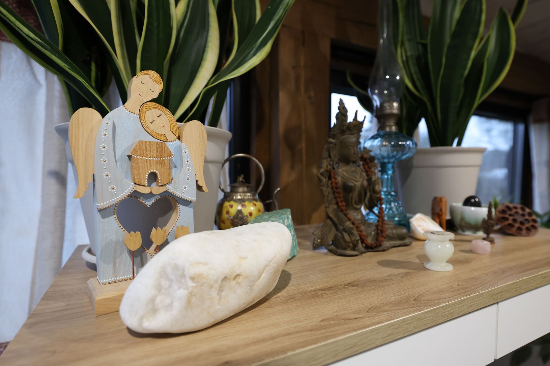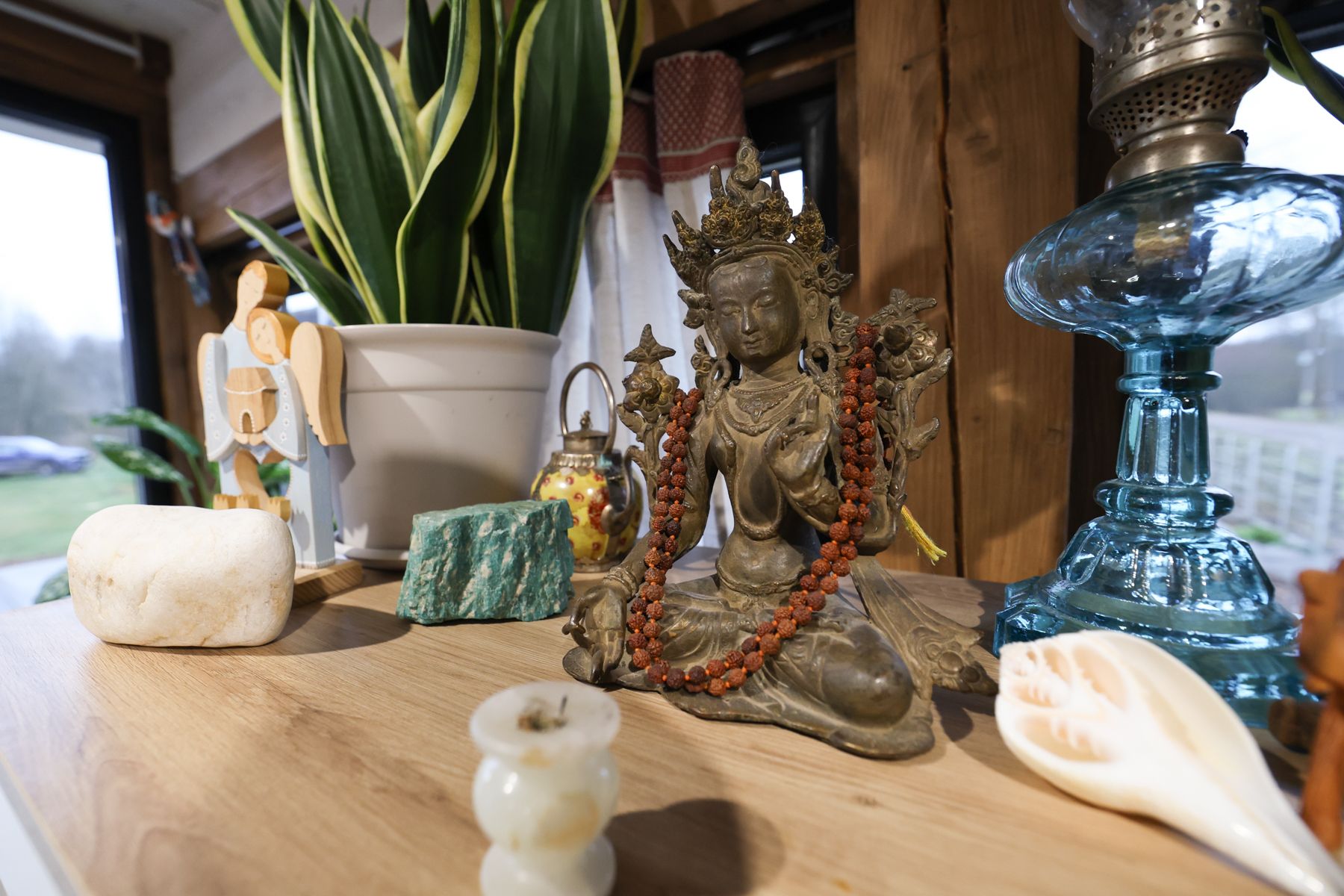 На стенах в кухне – роспись из древнего форта в Индии, в спальне – пока незавершенная картина алтайского художника – Тибет и всадник Майтрея. Белорусские сюжеты тоже близки сердцу героини – благо домов много, найдутся стены и для них.