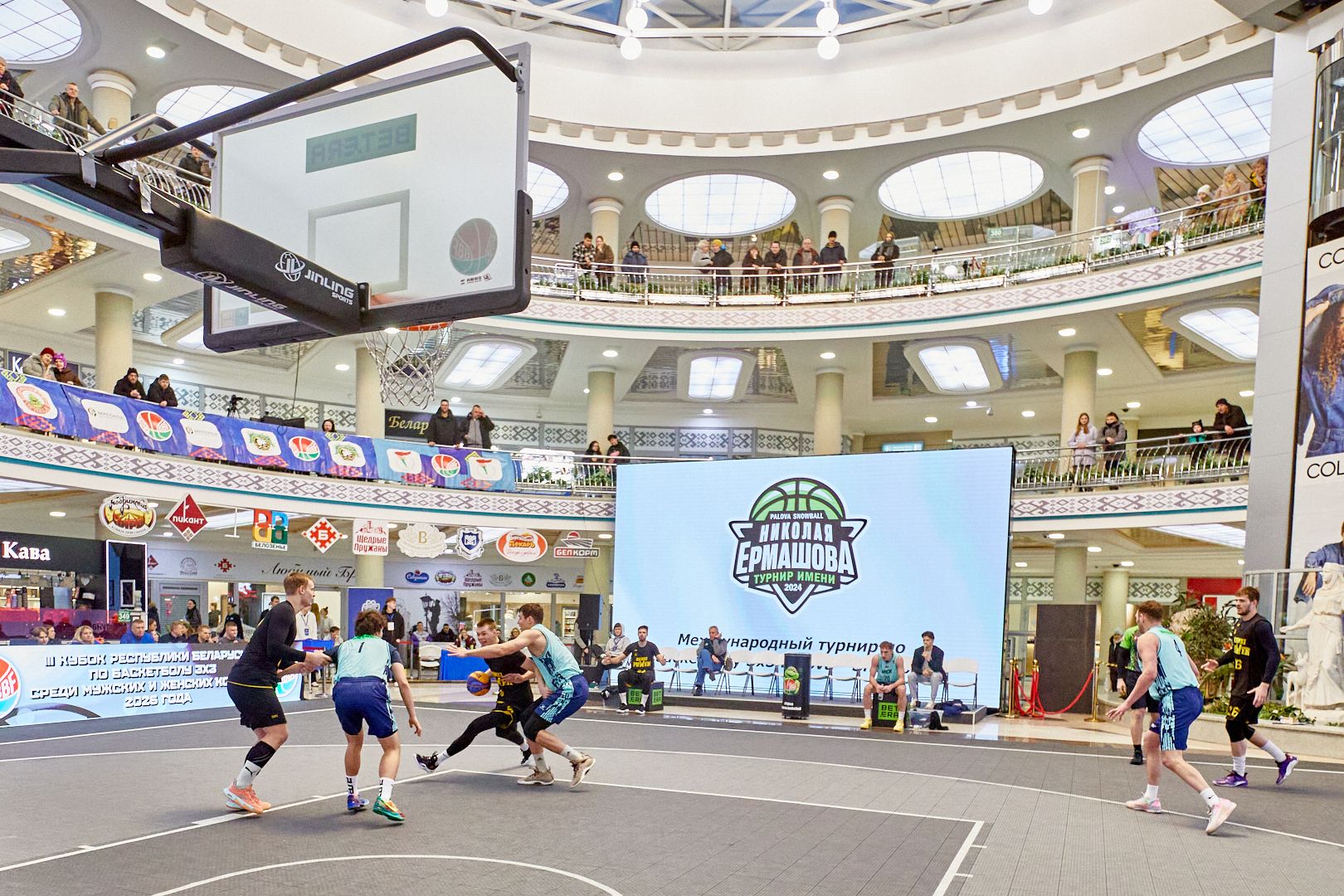 Баскетбол в торговом центре – зрелище скорее исключительное. Между тем соревнования именно по этой дисциплине могли наблюдать посетители ТЦ «Столица», где 14 и 15 февраля проходил международный турнир по баскетболу 3х3 среди мужских и женских команд имени Николая Ермашова.